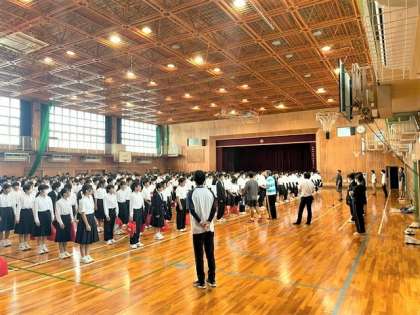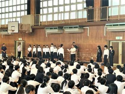 後期生徒会役員・学級役員の認証式に続いて、前生徒会長と新生徒会長からのあいさつがありました。