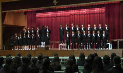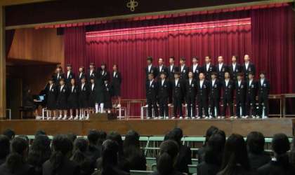 今学期、最後の学年行事。各学級とも「心をひとつ」に美しいハーモニーを奏でました。音楽室で歌う雰囲気とスケールが異なり、かなり緊張した様子でしたが、それぞれの持ち味が出せた合唱となりました。