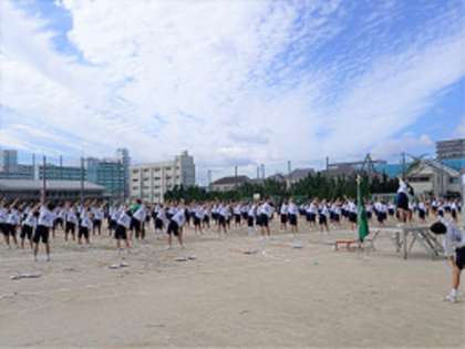 吹奏楽部のファンファーレのあと、開式宣言・諸注意・ラジオ体操と進んでいきます。