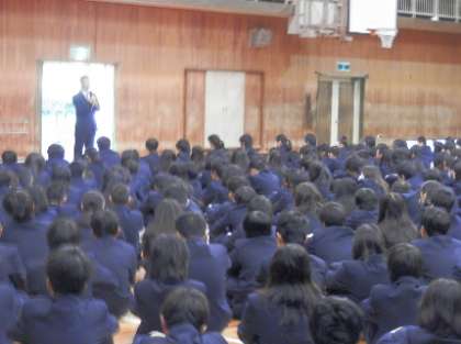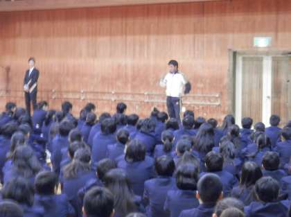 2学期の終業式を体育館で行いました。1年のうちで一番長い2学期。様々な取り組み、行事等を終え、充実した2学期となりました。冬休み中には、自分自身の成長過程を見つめ、3学期に向けて、より一層成長できるようにするための準備を進めてください。休み中、交通事故や事件等に巻き込まれないように、安全、健康に注意した生活を心がけてください。