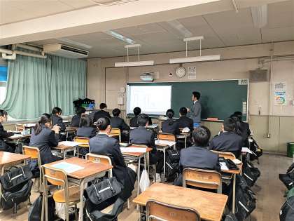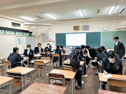 6時間目、2年生では高校の先生方に来ていただき、高校出前授業を行いました。