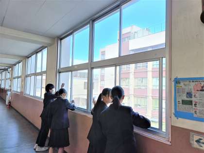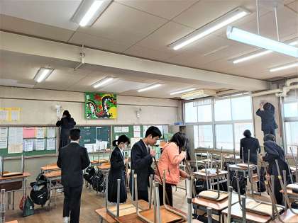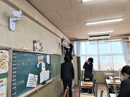 2年生の大掃除の様子です。エアコンのフィルターや扇風機もきれいに掃除しています。