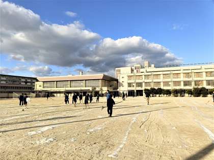 放課後、サッカー部員と野球部員がグランドのにがり撒きを手伝ってくれました。