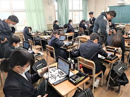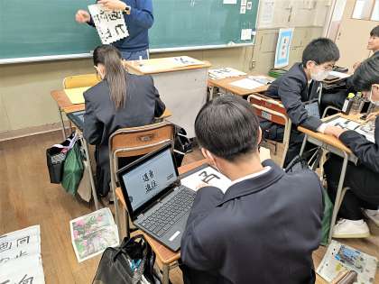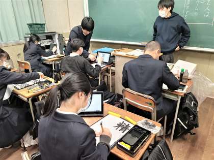 2年生は、2文字から4文字で今年の目標を書き初めしました。