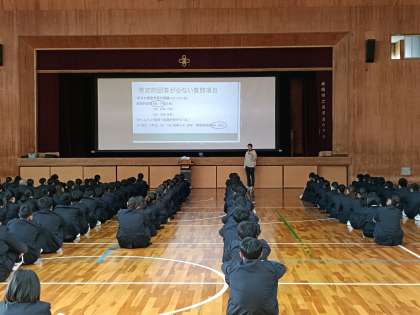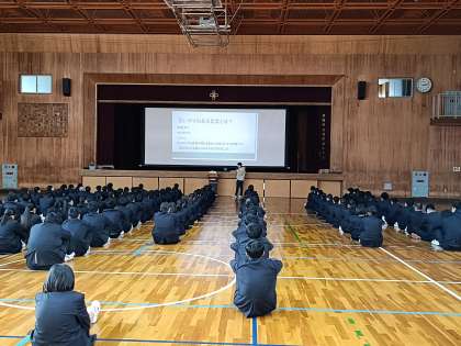 2年生は、6時間目体育館で集会を行いました。集会では、12月にとった生徒アンケートをもとに、2年生の強みや改善が必要なところなどについて、学年主任の先生からお話がありました。3学期は、「次年度の0学期」と言われます。2年生の誇れる部分はそのままにもっともっと成長してくれることを期待します。