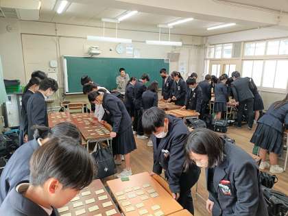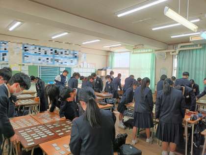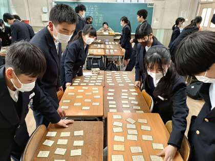 来週に迫った百人一首大会に向けて、どのクラスもクラス内で練習試合を行っています。どのクラスも白熱した戦いを繰り広げていました。本番が楽しみです。