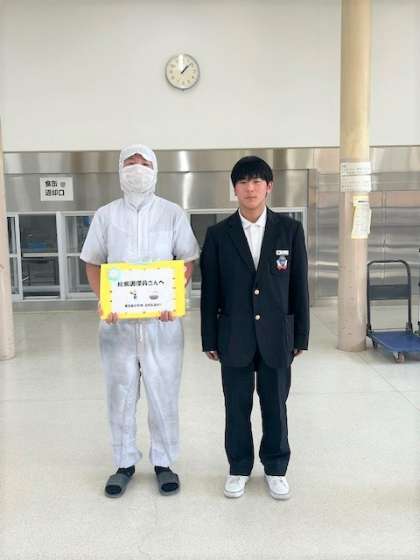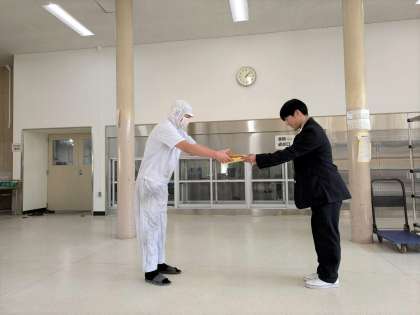 1/24〜1/30は、「全国学校給食週間」です。保健食育委員会より日頃の感謝の思いを書いたメッセージを給食調理員さんに手渡しました。