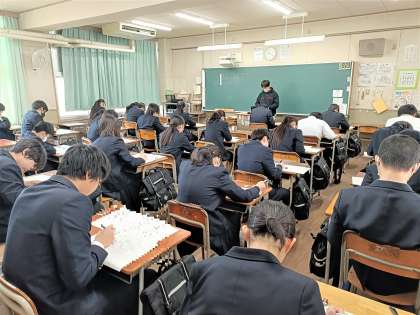 3年生は、学年末テスト2日目最終日。英語のテストに臨んでいます。