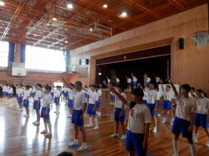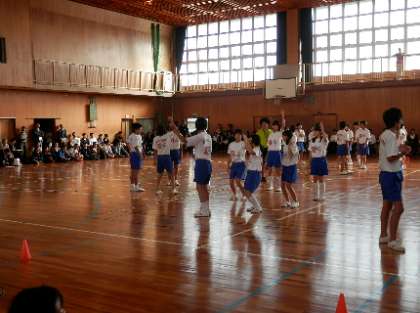 フォークダンス「マイム・マイム」の創作バージョンや、現代風のダンスまで、異なるリズムに合わせて、それぞれの思いを体で表現していました。2年1.2組のみなさん、感動をありがとう!!