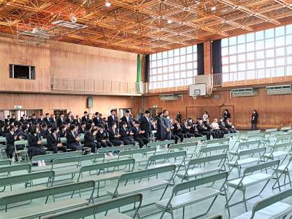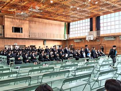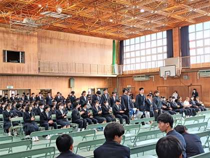 6時間目に体育館で「3年生を送る会」を行いました。3年生を拍手で迎えています。