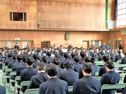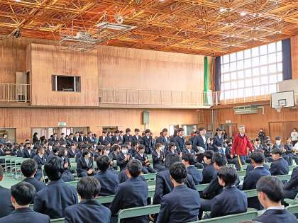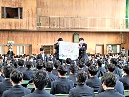 在校生を代表して生徒会からの「お祝いの言葉」ののち、各部活動から卒業生へメッセージを送りました。