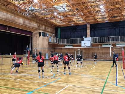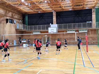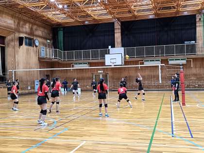 女子バレーボール部は、卒業した3年生と現役生で練習試合をしています。