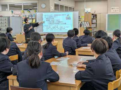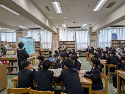 10日の5.6時限目、新1年生対象に図書オリエンテーションを行い図書室の利用の仕方を学びました。