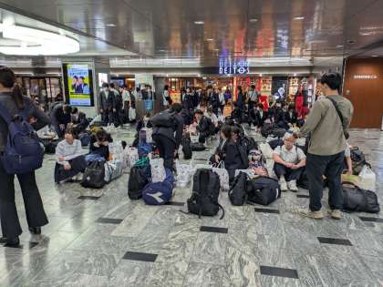 新幹線が入線するまで待機しています。