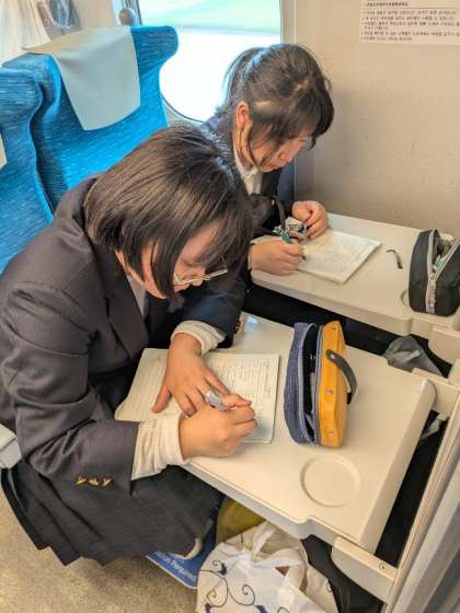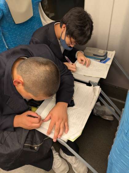 修学旅行 新幹線車内の様子