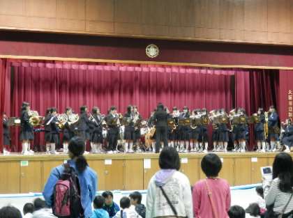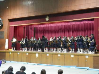 雨天のため、演奏会場が加島小学校の体育館となりましたが、本校の吹奏楽部がオープニングの演奏を行いました。「八木節」と「愛唄」の2曲を演奏しました。