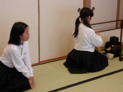 本校から、茶道部のお点前披露と社会科での作品展示で参加しました。