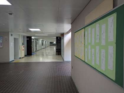 正門入って左の右壁に貼っています。