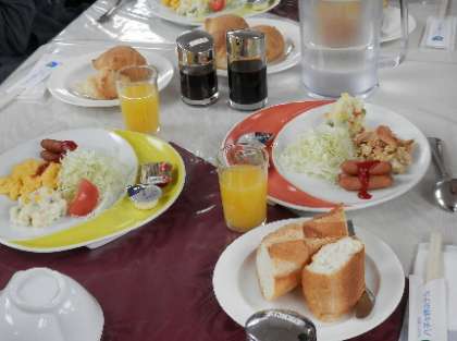 午前7時朝食を食べています。今日の一日レッスンに備えてエネルギーをしっかり注入。