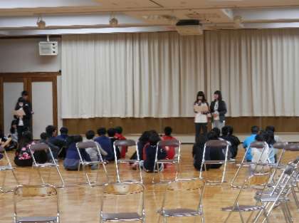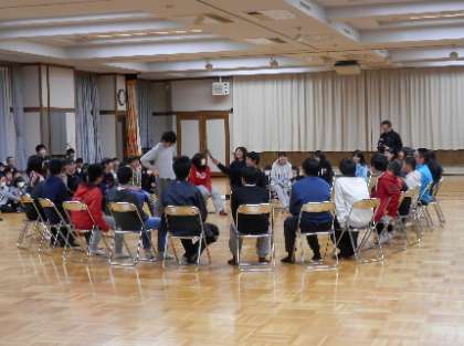 レク係による、手作りのクラス対抗の夜レクが始まります。まずは、何でもバスケットから。