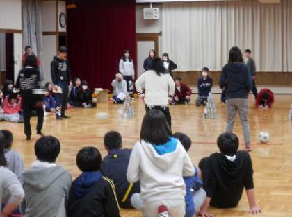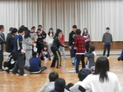 ボール蹴って何本空き缶を倒せるか。結構当たらないものです。最後は、「これって何?」ジェスチャーで表現している事が何なのかをあてるゲームです。なかなか盛り上がりました。