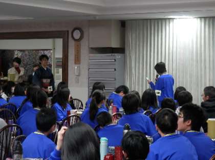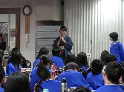 昼食の後、退所式を行いました。生徒代表の「お礼のことば」があり、女将さんから一言ご挨拶いただきました。本当にお世話になりました。