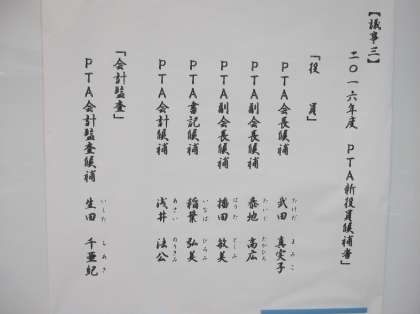また、決算総会後、2016年度のPTA新役員が承認されました。