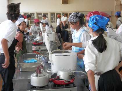 地域コーディネーターさんが中心となり、学習ボランティアさんとともに様々な形態で生徒の学習支援に協力していただいています。本日は、調理実習への入り込みと放課後の自主学習会の支援にフル回転で活動していただきました。