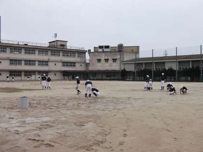 本日午後予定(5,6限)体育祭全体練習の実施にあたり、前日の天候不良により、運動 場の状態が悪く、本日早朝より、野球部の生徒がグランド整備をしてくれました。