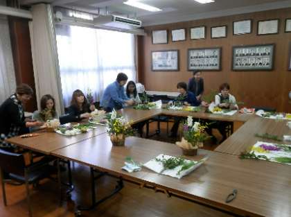 午後3時からPTA成人教育主催のアレンジメントフラワー教室が開催されました。