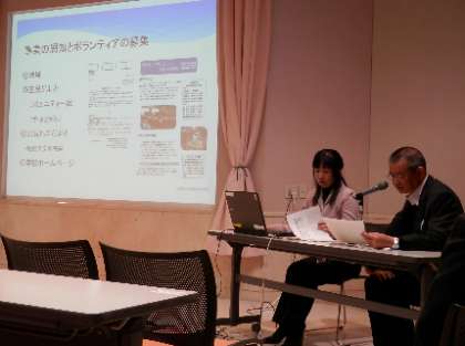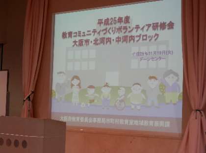 午後6時30分から中央区のドーンセンターに於いて、大阪府教育委員会地域教育振興課主催の「ボランティア」研修会が行われました。現、地域コーディネーターのお二人が本校の取り組みについて紹介しました。