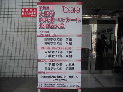 本日、大東市立総合文化センターに於いて、第55回 大阪府吹奏楽コンクール北地区大会(中学生の部)が開催され、本校吹奏楽部が出場し、