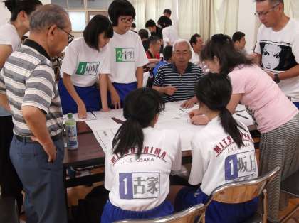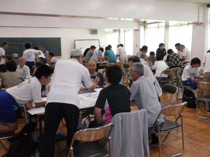 加島小学校(多目的室)に於いて、避難所運営ゲーム『HUG』が開催され、本校からも防災リーダーが参加しました。地域の方々と一緒に、避難所開設訓練をゲーム形式で勉強しました。
