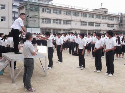 本日、全校朝礼に於いて、水泳部(第1・4ブロック 水泳競技大会)・
