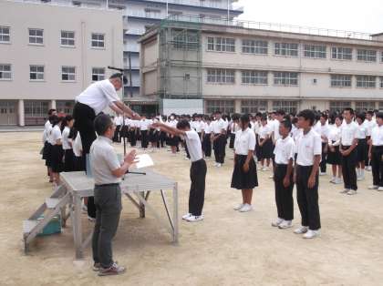 あいさつ運動 最優秀クラス『1年2組・2年3組・3年5組』、最優秀部活動『野球部』の表彰を行いました。