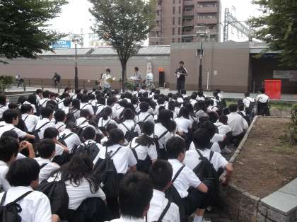 本日、1年生が校外学習の時間として、【ピースおおさか(森ノ宮)】で『フィールドワーク』『ピースおおさか館内見学」『映画鑑賞「大阪大空襲」』の活動を実施しました。