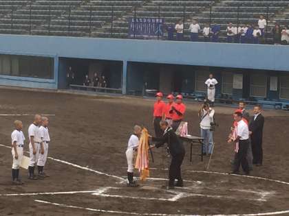 舞洲球場で行われた軟式野球で、美津島中学校が大阪市で優勝しました。