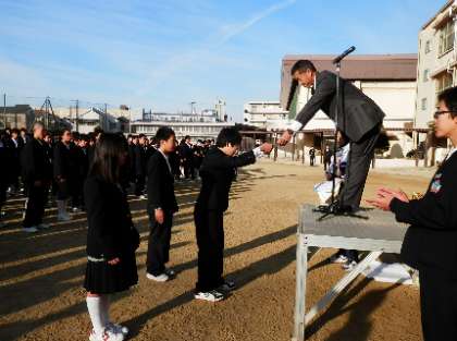 朝の全校集会では、明日10日の「人権デー」に向けての講話と賞状の授与が行われました。毎年行われる人権週間の取組ですが、今年は第65回目となり、啓発活動の重点目標を「みんなで築こう 人権の世紀 〜考えよう 相手の気持ち 育てよう 思いやりの心〜」とし、17の強調事項を掲げています。この機会に自分たちの身の回りの生活をもう一度点検しましょう。