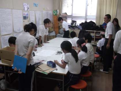 本日、美津島中学校・三津屋小学校・加島小学校合同の小中交流会、