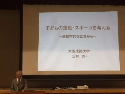 その後、成蹊大学副学長の三村寛一様より「大阪市中学校体育における体つくり運動の現状と課題」と題しての講演がありました。