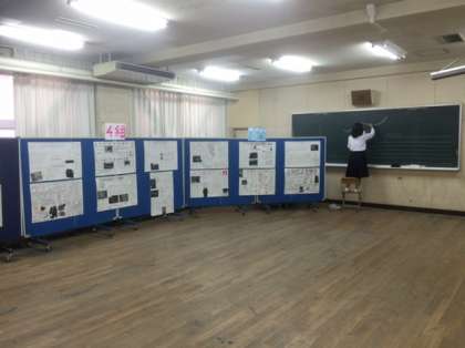 1年平和学習のまとめ、国語科、美術科の展示の様子です。