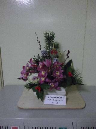 午後3時からPTA成人教育主催のアレンジメントフラワー教室が開催されました。今日は、お正月の花をアレンジしました。