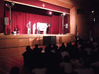 本日5.6限、体育館にて 劇団(ステージタイガー)を招き、学校生活を題材とした演劇を全校生徒が鑑賞しました。