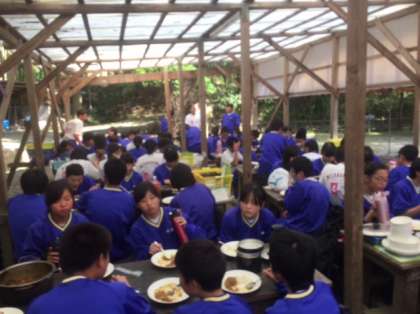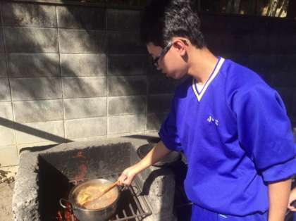 食材を調理してお米を洗い、鍋と飯ごうを火にかけて、野菜が柔らかくなればカレールーを入れます。
