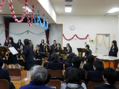 12月25日の終業式の後、本校の大会議室にて、吹奏楽部によるクリスマスコンサートが開催されました。