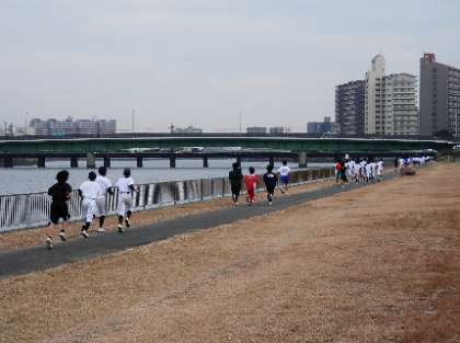 神崎川駅(阪急線)を超えて三国橋の方まで走ります。