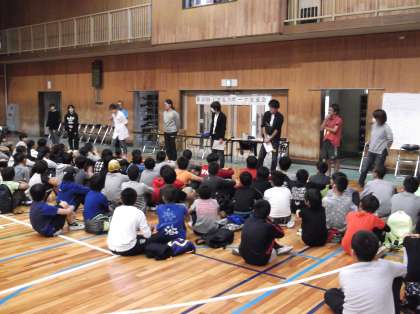 本日、土曜授業終了後、午後〜 校下小学校を招いての小中交流会(第26回 子どもスポーツ交流会)を本校 体育館で開催、白熱したドッジボール大会となりました。