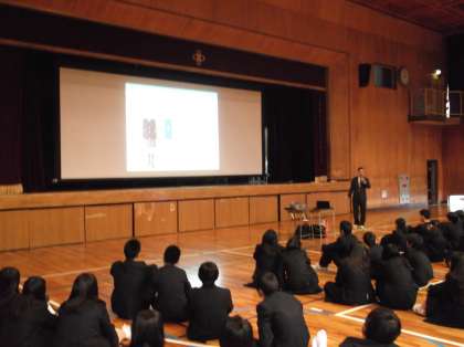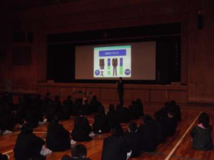 本日6限、本校3年生の生徒を対象に「制服 着こなし講座(体育館)」