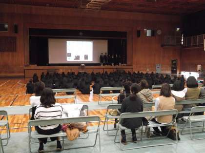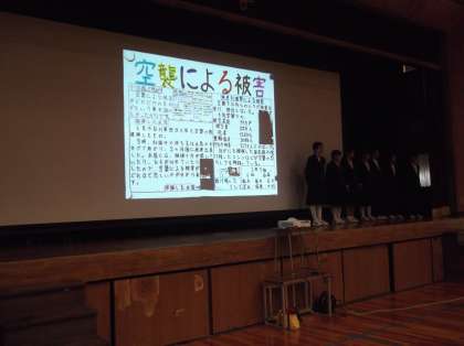 各クラスから選出された班の生徒が平和学習の発表をしました。