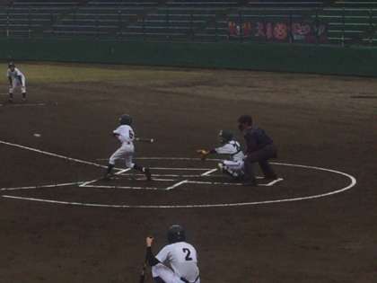 美津島中学校は、神戸市立大原中学校と対戦しました。どちらもよく似たチームで投手戦になりましたが、4回と6回に1点を入れられてしまい、0対2で惜敗してしまいました。